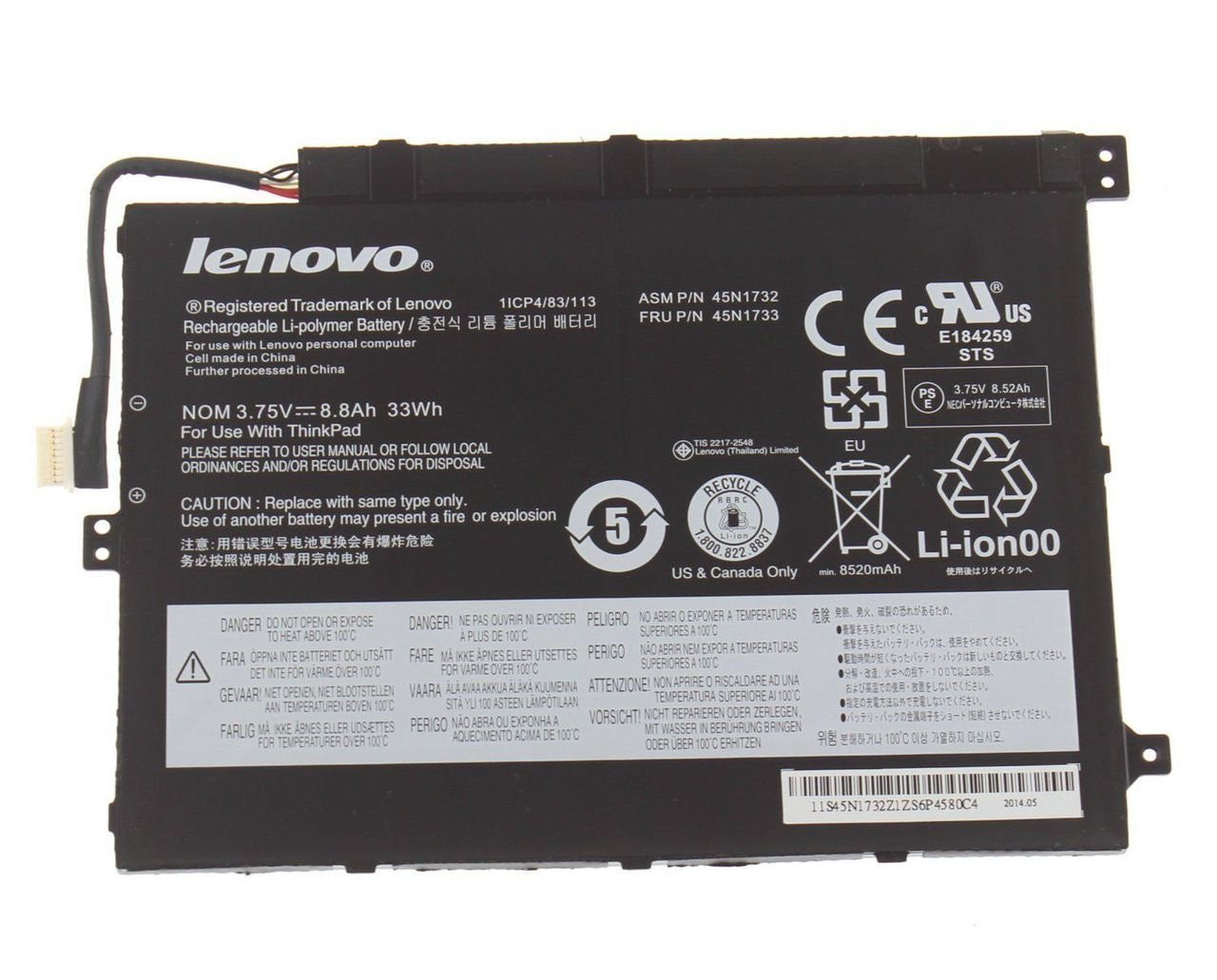 New Genuine Battery For Lenovo ThinkPad Tablet 10 3.75V 33Wh 45N1731